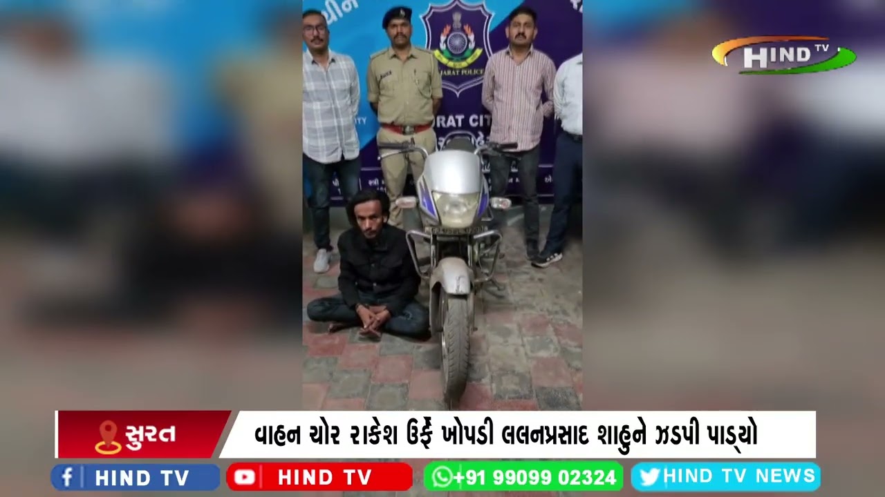 સુરતની સચીન પોલીસે બાઈક ચોર ઝડપ્યો બાઈક ચોરી કરનાર રીઢાને ઝડપી પાડ્યો વાહન ચોર રાકેશ…