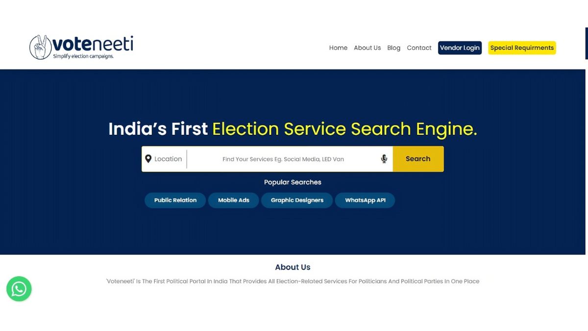 अब राजनीतिक सेवाएं ऑनलाइन! भारत में लॉन्च हो रहा है ‘वोटनीति’ – भारत का पहला चुनाव सेवा सर्च इंजन!