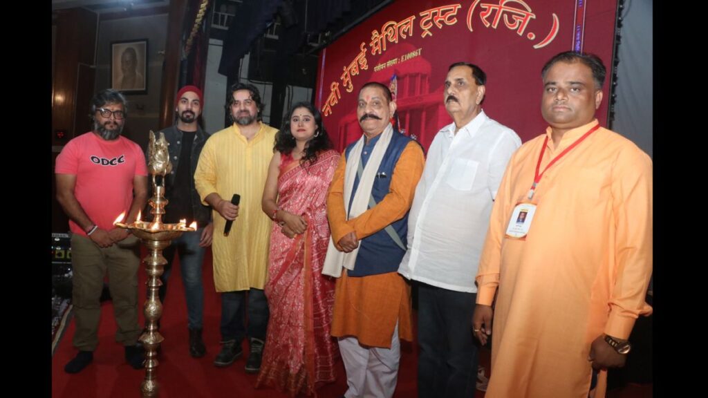 नवी मुम्बई मैथिल ट्रस्ट के मुरारी ठाकुर , वरिष्ठ समाज सेवी शुभचंद्र मिश्रा,श्री जय नारायण झा ,”नूनरोटी” मैथिली वेबसीरीज के निर्माता– निर्देशक श्विकास झा , रौशनी झा और कलाकार आदर्श भारद्वाज साथ में वरिष्ठ साउंड इंजीनियर श्री शंकर सिंह जी